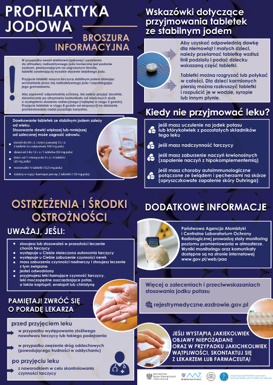 W przypadku awarii elektrowni jądrowej i uwolnienia do atmosfery radioaktywnego jodu na polecenie stosownych władz zostanie uruchomiona dystrybucja tabletek z jodkiem potasu.