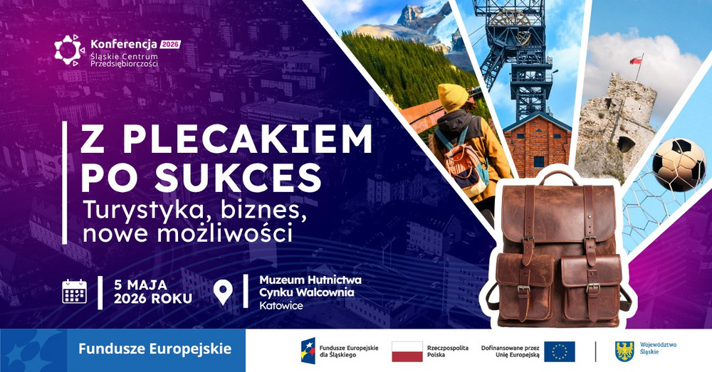 Śląskie Centrum Przedsiębiorczości serdecznie zaprasza do udziału w konferencji „Z plecakiem po sukces — turystyka, biznes, nowe możliwości”, która odbędzie się 5 maja 2026 r. w Muzeum Hutnictwa Cynku Walcownia, ul. 11 Listopada 50, 40-387 Katowice. Celem wydarzenia będzie prezentacja możliwości i korzyści wynikających z wdrażania Funduszy Europejskich dla Śląskiego na lata 2021-2027.