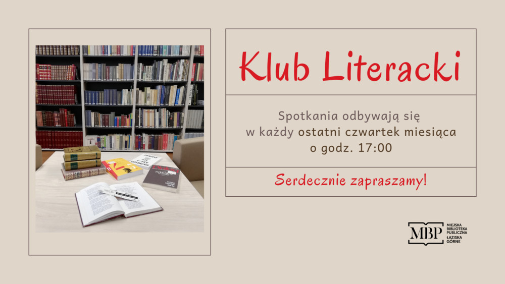 Zapraszamy na spotkanie Klubu Literackiego wszystkich chętnych, którzy tworzą, myślą nam wydaniem własnych utworów, chcieliby się podzielić swoim dorobkiem i doświadczeniem i przede wszystkim spędzić miło czas.