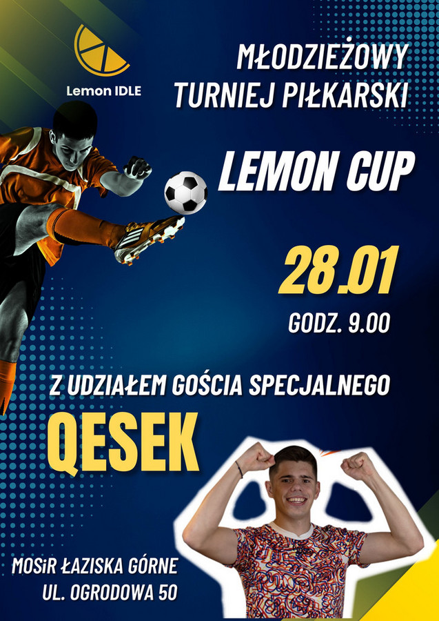 Uwaga! Uwaga! Już w najbliższą niedzielę 28.01.2024 r. o godzinie 9:00 w naszej hali widowiskowo-sportowej odbędą się piłkarskie zmagania zawodników z rocznika 2007 w turnieju Lemon Cup.