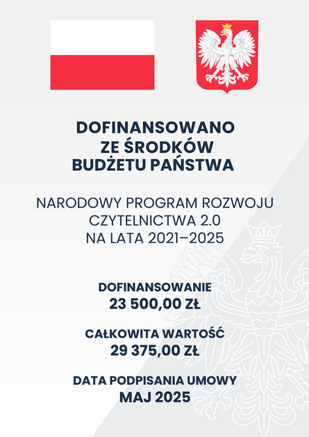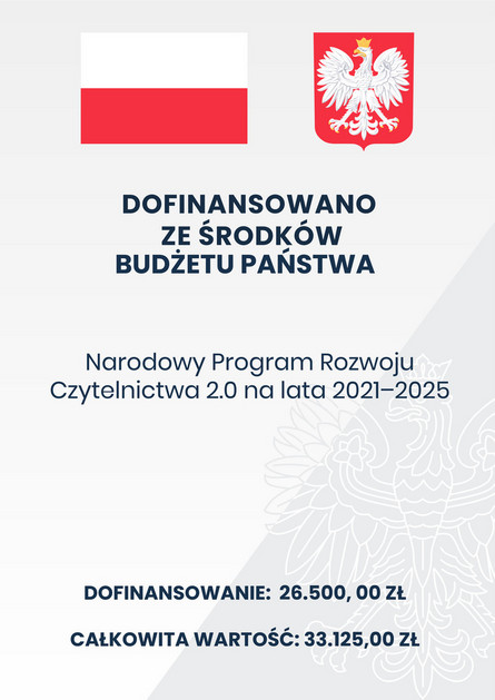 Zrealizowano ze środków finansowych Ministra Kultury i Dziedzictwa Narodowego w ramach Narodowego Programu Rozwoju Czytelnictwa.